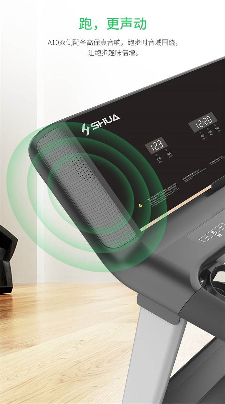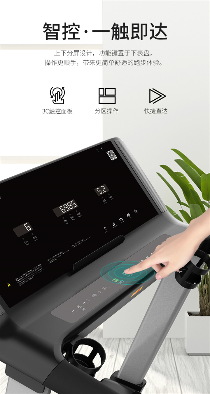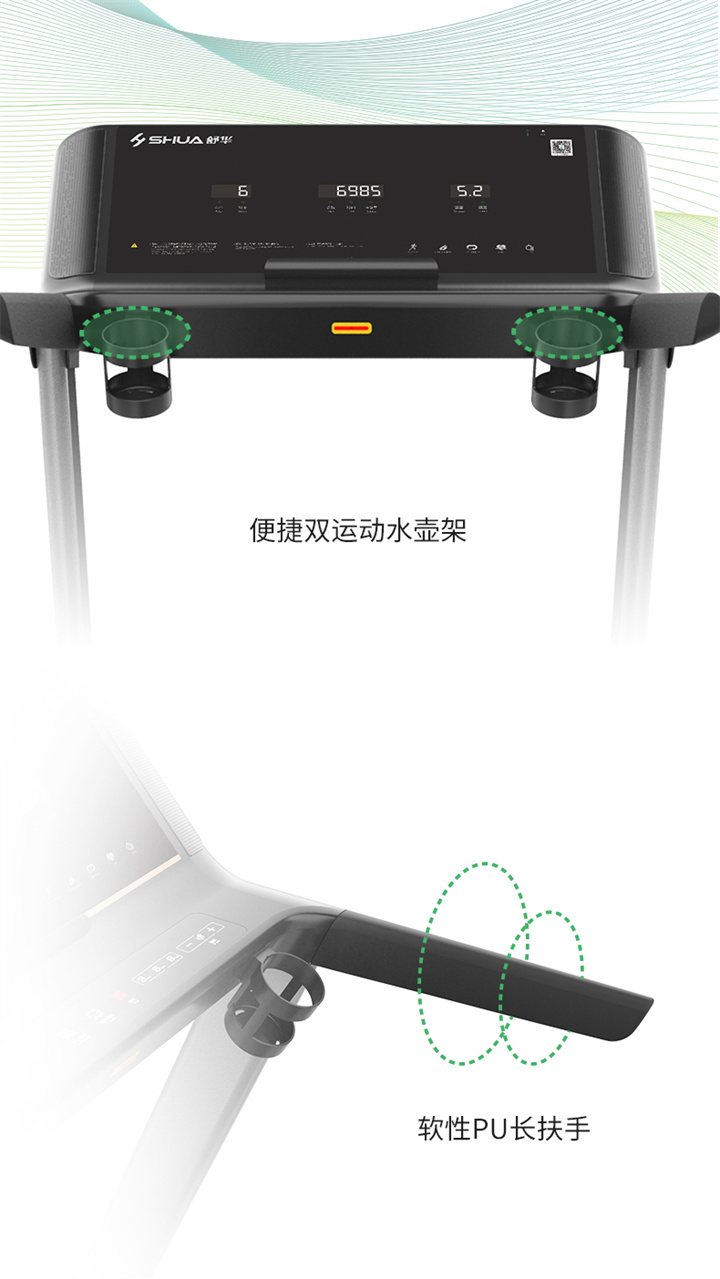 IM电竞推荐健身器材-舒华商用电动跑步机SH-T6500拥有10.1寸IPS高清触摸屏、Z型动感时尚外观设计、70×150mm精钢立柱机身、F级高效静音马达、520mm商用豪华跑带和35mm双层全跑台减震跑板等优势,让您享受科学跑步。