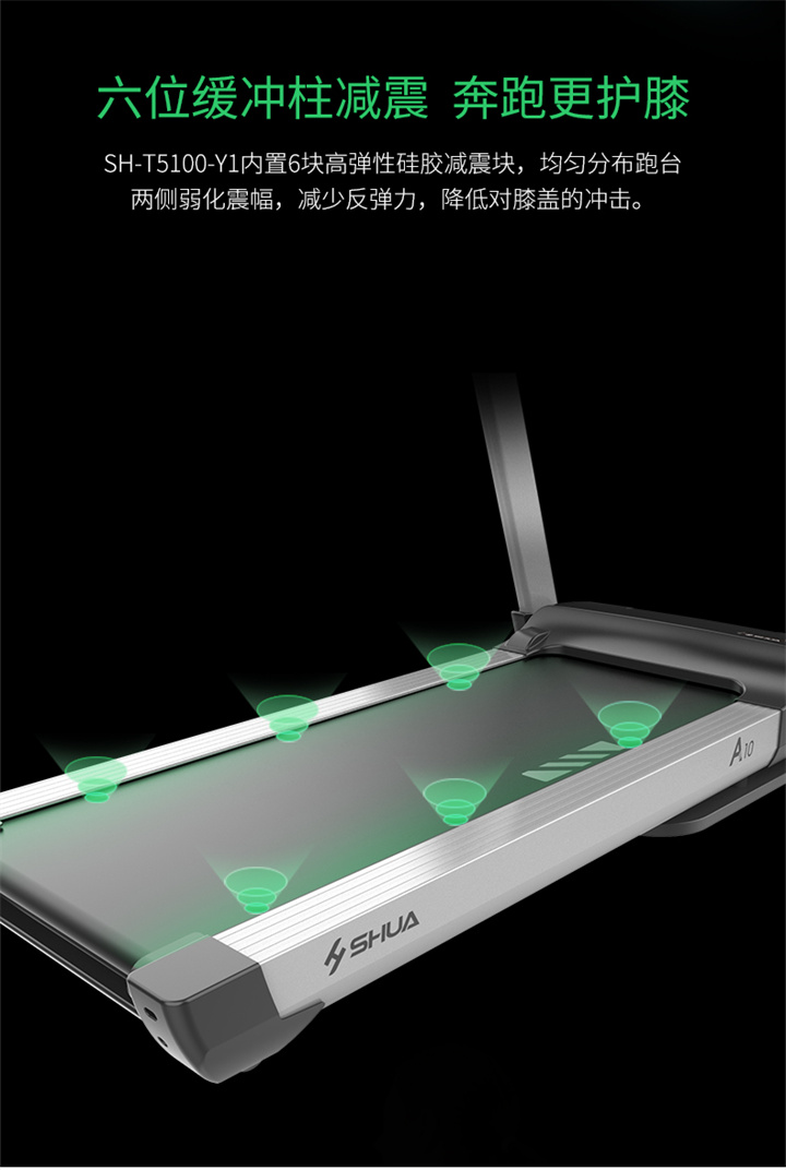 舒华跑步机SH-T5500采用T18mm的跑板,T1.6 钻石纹的跑带,运用6位硅胶减震,对您跑步中的膝盖进行全方位的呵护,选用手握心率测试,跑步面积达480×1350mm,可承受126kg的使用者使用。