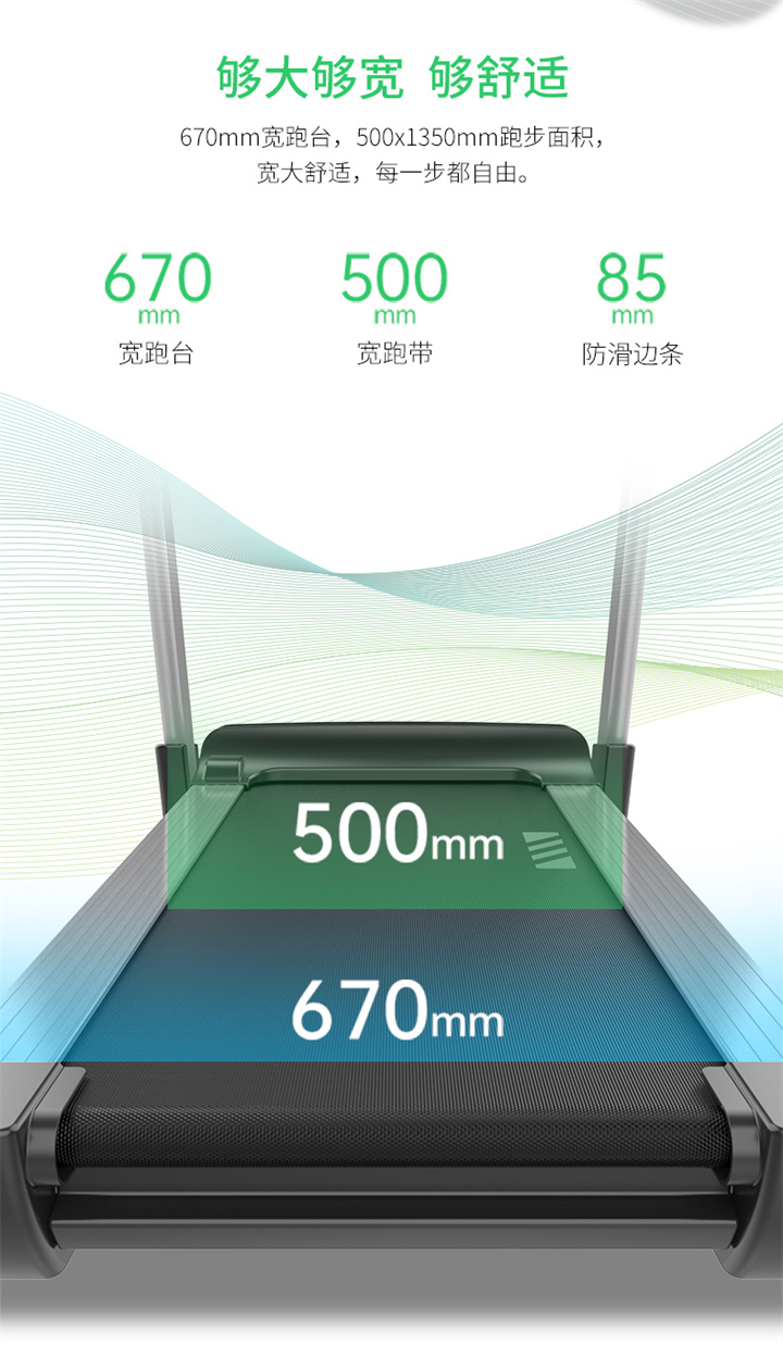 舒华家用跑步机SH-T6700(X6)采用18T+12T双层跑板,T2.2mm钻石纹的跑带,双层跑板全跑台减震,对您跑步中的膝盖进行全方位的呵护,选用接触式心率感应和无线心率感应等多种方式获取数据,跑步面积达520×1450mm,可承受130kg的使用者使用。