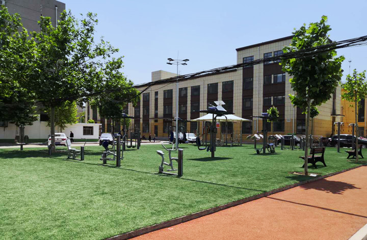 淄博某社区为了方便社区内人员使用健身器材,通过IM电竞的设计,合理布局,搭建了以舒华智能健身驿站为主的户外健身器材口袋公园